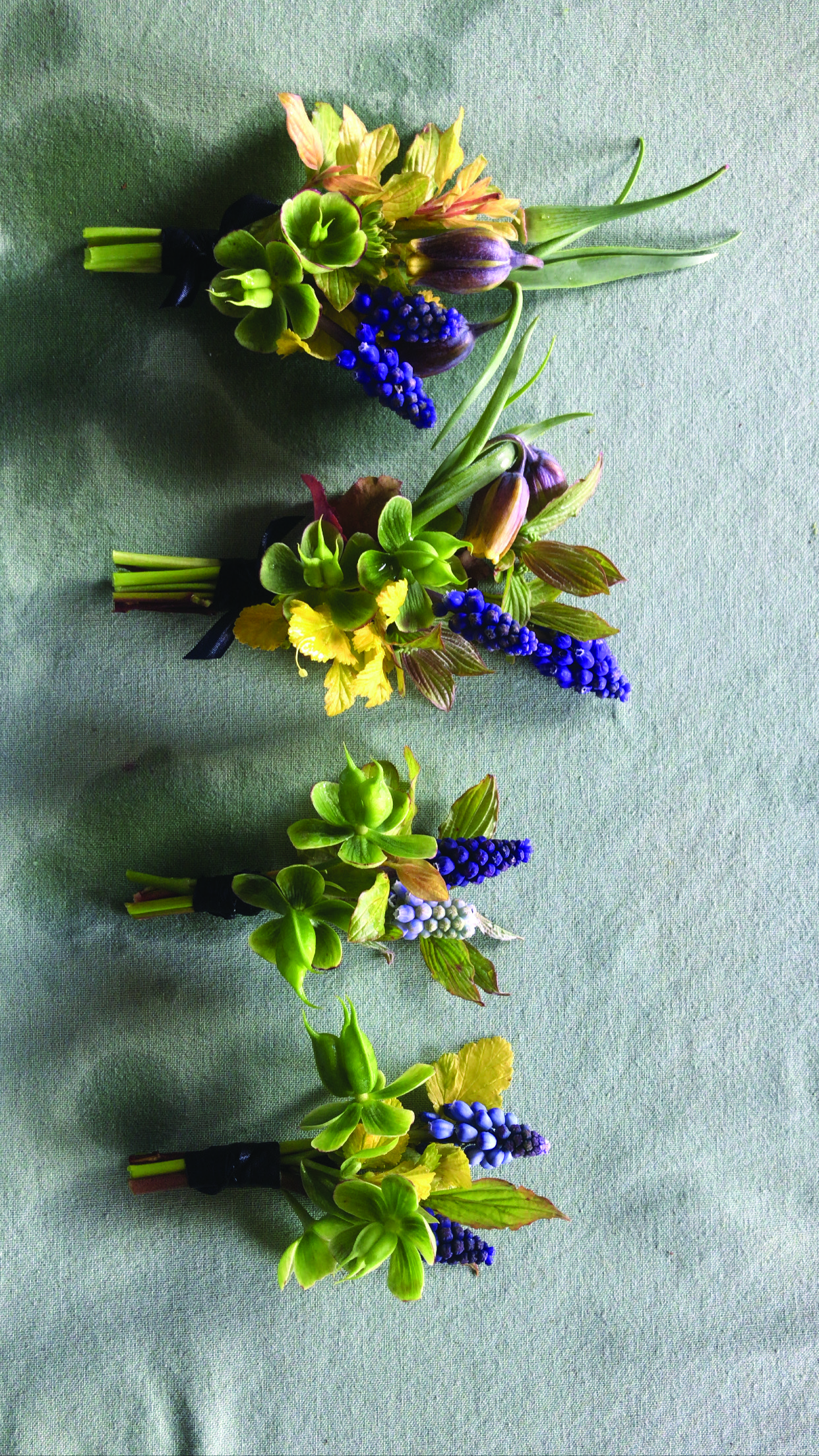 The bridal arrangements arrive in water-filled vessels within ribboned bags, and there are buckets of flowers for you to arrange among yourselves, making these wedding flowers creative, personal and affordable. Such a meaningful idea!