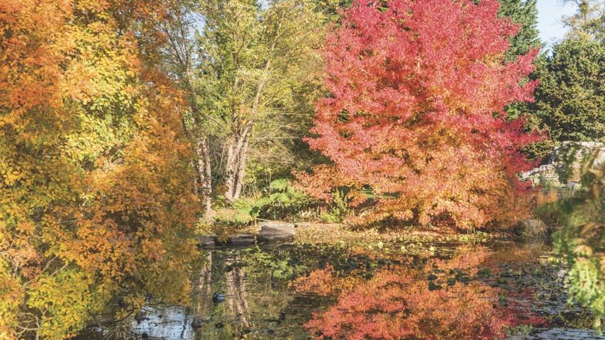 While many of us discount putting trees in our gardens due to their size, there are a number of trees suitable for smaller gardens, many of them bringing the added bonus of striking autumn colour. Favourites among those here at the Botanic Garden are Amelanchier lamarckii (snowy mespilus) and the showstopping Japanese maple Acer palmatum ‘Osakazuki’, whose palmate purple leaves take on brilliant red colourings in autumn.