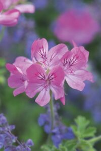 A single lavender bush (Lavandula) beside a path can fill the air with fragrance, especially if it’s brushed as you walk past it, while flowering tobacco plants (Nicotiana sylvestris) will pump out evening fragrance. Additionally, scented plants such as geraniums Pelargonium ‘Pink Capitatum’, Pelargonium tomentosum or scented blooms of Dianthus ‘Mrs Sinkins’ will attract a diverse range of beneficial insects such as butterflies, moths and bees to your garden.